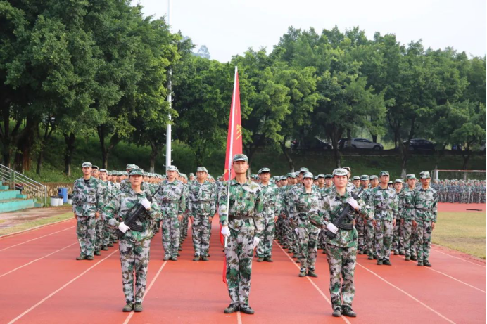 宝剑锋从磨砺出,梅花香自苦寒来。在这似长似短的14天里,我们见证了大一新生的成长与蜕变。看,挺拔的身姿,整齐的队列,行行列列之中,尽显年少峥嵘。各个方队踏着坚定矫健的步伐,精神抖擞,气势昂扬,以饱满的精神状态接受检阅,总教官指挥同学们进行队列动作、拳术、匕首操、手语操等项目汇操表演。同学们动作整齐、出拳有力、踢腿带风、口号响亮、目光坚定、气势如虹,铿锵有力的誓词回荡在绿茵场上空,久久不能平静。