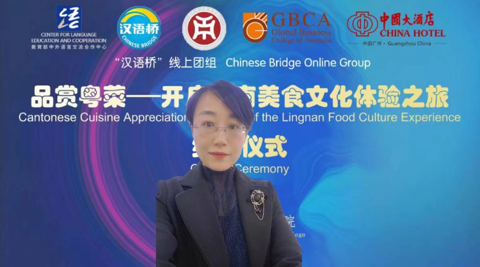 “中文+粤菜”直播课程教师代表张丽菠代表教学团队,对教育部中外语言交流合作中心的项目授予、省内粤菜文化行业协会,以及参与项目指导的其他专家的辛勤付出表示了感谢。认为学员们学习汉语和粤菜的热情将激励老师们在今后的教学过程中,投入更多的精力上好每一节课,为中外文化交流做出更大的贡献,促进各国人民之间的文明化交流,助力人类命运共同体的建设。