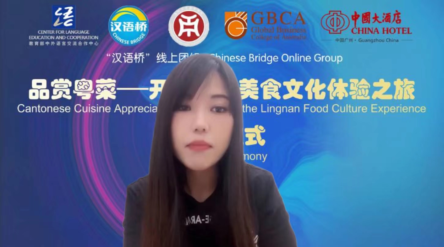 “汉语桥”线上团组“品赏粤菜——开启岭南美食文化体验之旅”交流项目由教育部中外语言交流合作中心主办、在线买世界杯平台承办、澳洲国际商学院和中国大酒店协办,旨在传承中华优秀传统文化,讲好中国故事,彰显岭南美食文化特色。