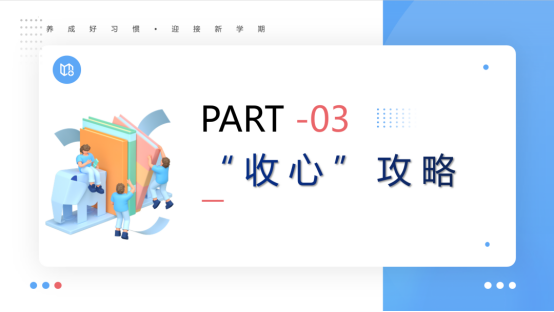 假期已过,再次返校迎接新学期。同学们要养成坚持早睡早起,改正假期熬夜的习惯,尽量养成早睡早起的健康模式。若感到心里不适,可以跟室友、老师们说出自己的不安,可以散散心,迅速调整好自己的心态。让我们重整行装、以满腔的热情、饱满的精神和坚定的信心,去迎接新挑战、新征程。