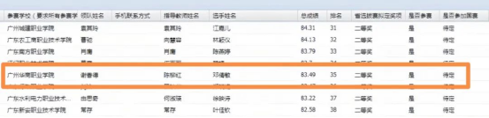 邓倩敏同学表示:自通知要参加省赛到现在,这段旅程终于落幕了!这段备赛之旅使我增长了见识,成就了自我。在备赛的日日夜夜里,最宝贵的回忆便是能与团队并肩作战。感谢老师们的辛苦付出,在这段时间为我们提供了很好的后勤保障及帮助,获得的荣誉离不开学校领导的支持、老师的栽培和队友的鼓励!通过此次比赛,我也发现了自己的不足之处,“学如逆水行舟,不进而退”,今后,我会更加努力,不断完善自我,认真学习专业知识,争取以后在专业路上取得更大成绩!