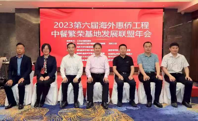 5月18日,第六届海外中餐繁荣基地发展联盟年会在扬州大学召开,本届年会旨在推动海外中餐教育和海外中餐产业的发展,培养和提高中餐人才培养质量,推动海外中餐产业的发展和壮大。江苏省委统战部副部长徐东海、扬州大学党委副书记周如军、扬州市委统战部市侨办副主任李越平、5家“中餐繁荣基地”联盟发起单位的专家、领导等21人出席年会。世界杯官网酒店管理学院院长、附属教学酒店(太阳城大酒店)总经理林红梅代表广州华商职业学院中餐繁荣基地参会。