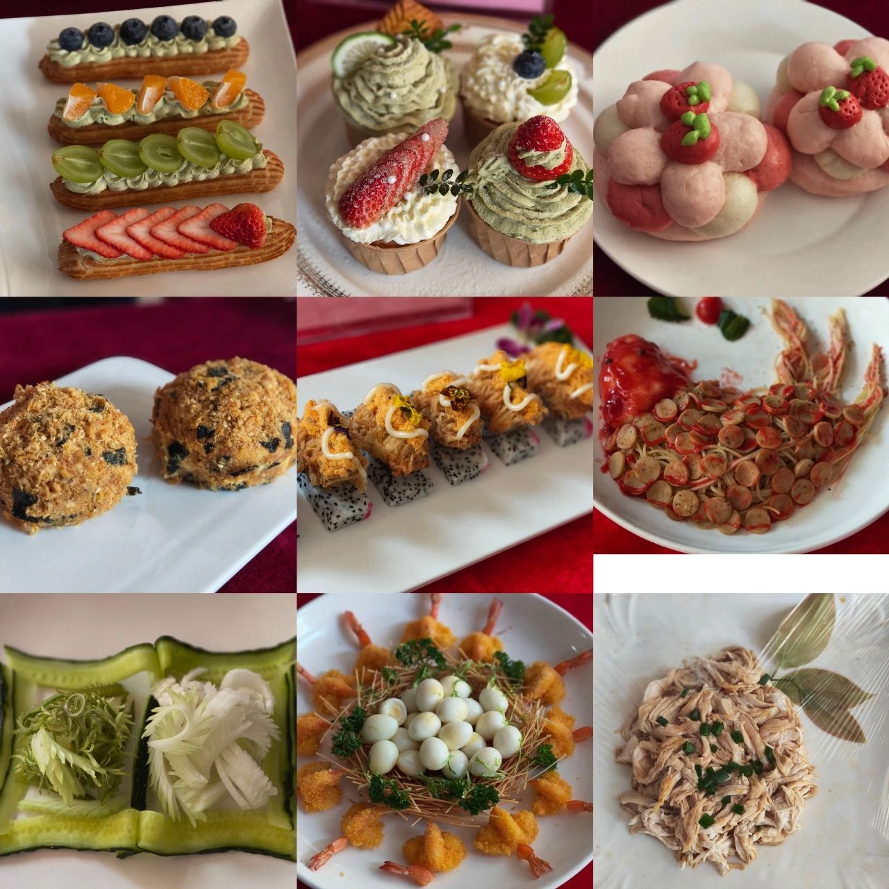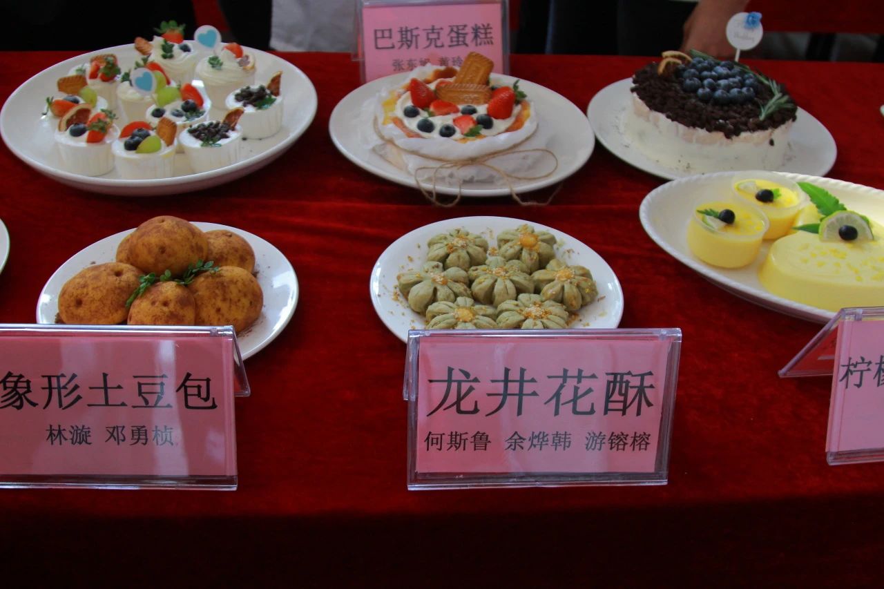 造型美观、色泽艳丽、匠心独具、“色香味”俱全,学员制作的点心,既让人赏心悦目、垂涎欲滴,又展示了中西面点的魅力,每件作品都印证了酒管学子的细心和精湛的技艺。