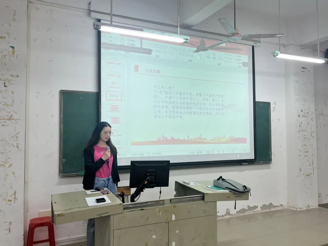 22级中西面点1班胡嘉健同学为大家介绍了入团、入党流程和注意事项,包括提交申请书、推优、评选积极分子、发展对象、预备党员等阶段,帮助更多想入团、入党的同学了解详细的信息,同时强调了各位同学入党前要端正自己的入党动机,不可因个人利益等而盲目入党。胡嘉健同学还为大家分享了自己如何加强对党的理论知识以及专业知识的学习,对党的了解有了进一步的加深。在新冠肺炎疫情爆发时,她和无数党员一样前仆后继,加入了抗疫防疫的工作中,她深刻地明白了“党”不单单是名称,而是一个个党员牺牲自己为后方的我们换来安全的保障。我们要用自己的力量,一点一滴,为祖国美好的明天,为人民的幸福生活贡献一份力量!