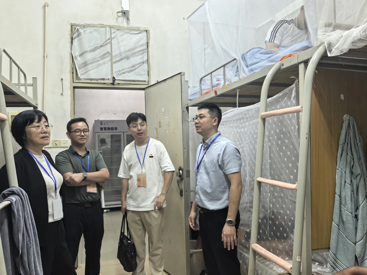 为了深入了解2024新生入学情况,倾听他们的心声,帮助新生更快地融入大学生活,营造温馨的生活与学校环境,8月30日晚上,酒店管理学院林红梅院长、谢锦权副院长、何洪健副院长、团委副书记陈海宁老师及新生辅导员黄向荣带领各班班助走访新生宿舍,带去温暖的问候和深切的关怀。