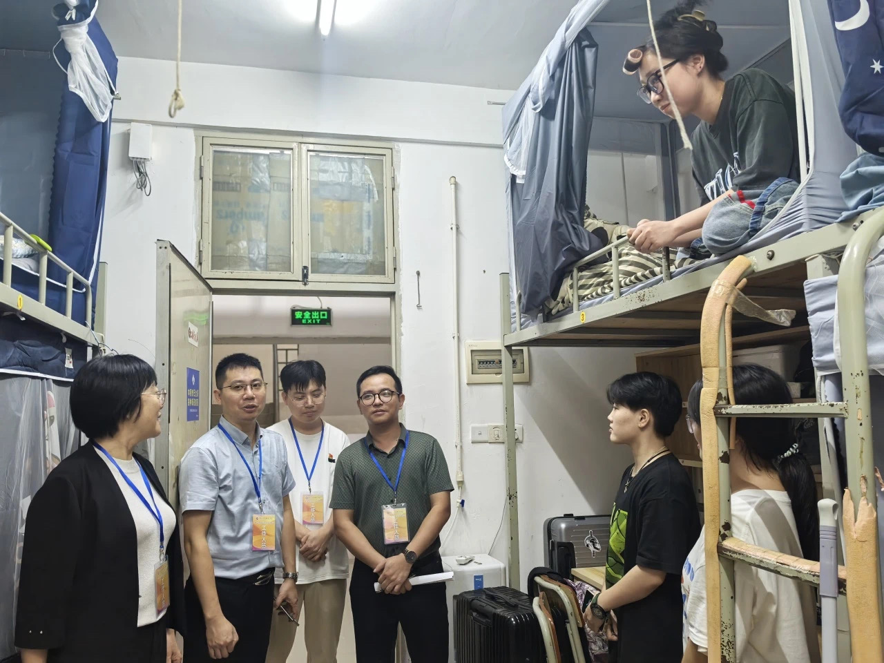 探访过程中,酒店管理学院领导和老师们走访新生宿舍,与新生们亲切交流。询问他们初入校园的感受,了解他们的生活需求和适应情况。老师们鼓励新生们积极融入大学生活,积极参加社团活动,同时也要努力提高专业知识水平,提醒大家注意宿舍用电安全,加强安全注意,注意个人卫生。