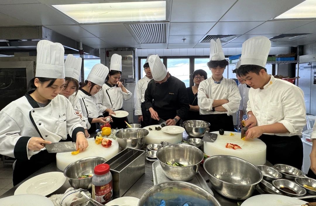 为提升师生中式烹饪技艺与专业素养,拓宽烹饪教育国际化视野,2025年5月27日至29日,在线买世界杯平台酒店管理学院林红梅院长带领陈海宁、范国权、周梅华、崔毅峰4位教师及烹饪工艺与营养、中西面点工艺专业20名学生,赴香港中华厨艺学院开展为期三天的研学活动,开启了一场传统与现代交融的厨艺研修之旅。