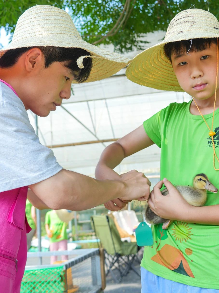 营地的鸭舍和科普园里,生活老师们和孩子们一起给领养的小鸭子喂食、换水,观察小鸭子的成长变化,还会趁机给孩子们讲一些关于小鸭子生活习性的知识。在南瓜苗圃,老师引导孩子们观察南瓜苗的生长,记录下它们的变化,还和孩子们一起捕捉昆虫制作标本,让孩子们在亲近自然的过程中收获知识。