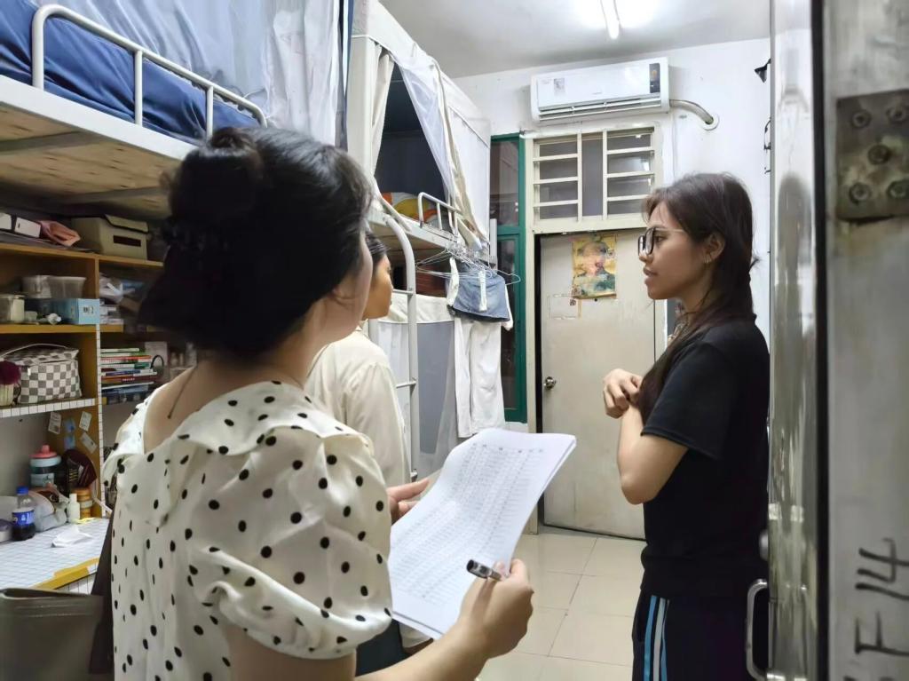 检查过程中,学院老师深入各宿舍,重点排查水电使用规范、消防设施完好度、物品存放安全等情况,对发现的潜在隐患及时提醒整改,反复叮嘱同学们提高安全意识,杜绝违规用电、杂物堆积等问题,从细节处为宿舍安全筑牢防线。同时,老师们也与同学们交流返校后的适应情况,了解大家在生活、学习上的需求,引导大家做好宿舍整理,以整洁环境助力状态调整。