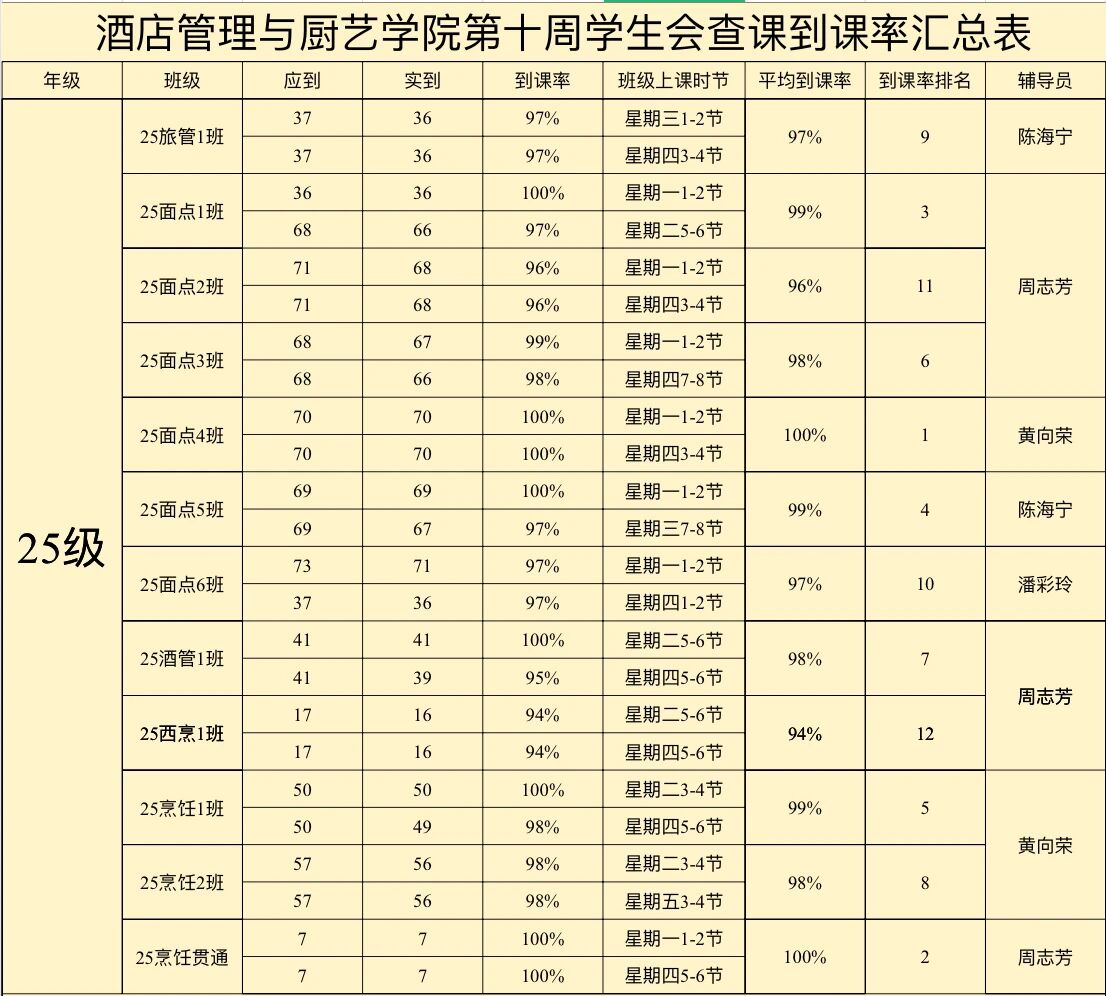 25级酒店管理1班:98%