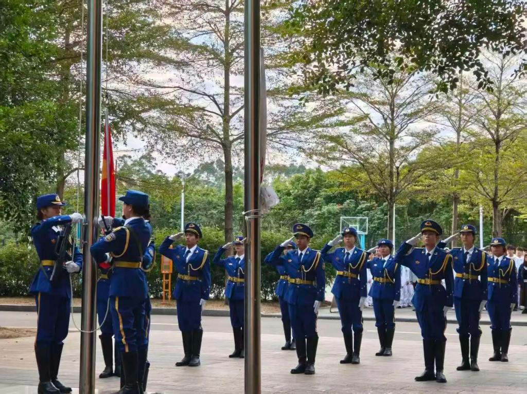 国旗飘扬,初心如磐。升旗仪式结束后,副院长谢锦权寄语学子:围绕“日月铭初志,旗旌指大同”主题,他回顾革命先辈坚守初心的历史,阐释“大同”所蕴含的平等、公正、和平追求与人类命运共同体理念的契合之处;提及党的二十届四中全会擘画的“十五五”规划蓝图,呼吁同学们铭记“国兴则家昌”,勤奋学习、积极实践,争做堪当民族复兴重任的时代新人,同时向师生送上祝福。