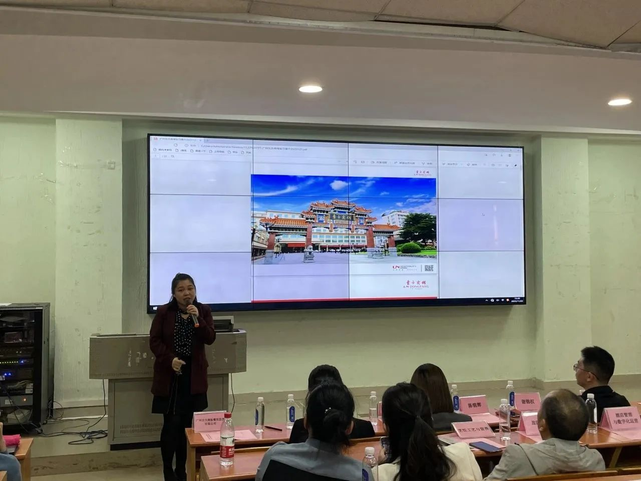 宣讲会上,谢锦权代表酒店管理学院对各位企业来宾参加企业招聘宣讲会表示欢迎与感谢。谢锦权表示,校院各级领导十分重视毕业生的岗位实习与就业工作,通过积极访企拓岗不断加强校企合作,为同学们的实习与就业开拓更多优质的资源与机会。会上谢书记向毕业生们提出三点希望:高度重视、珍惜与把握机会, 自信自强、积极展示求职能力与风采,严谨认真、不断提高职业技能与职业素养。