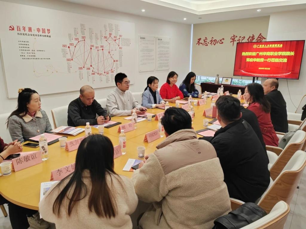 1月22日上午,学院领导班子一行4人来到广东省人力资源研究会,受到了研究会秘书长汪志红教授等领导的热情接待。交流会上,双方领导分别介绍了出席活动的人员,并就各自单位情况进行了介绍。汪志红秘书长表示,广东省人力资源研究会拥有丰富的专家智库资源,是基于产学研合作,致力于推动广东省人力资源管理与服务转型升级的平台,成立至今共有会员单位900余家,涵盖多个行业的众多知名企业。邓应华院长表示,期待与研究会深入合作。与会双方代表就校企协同育人、学生实习就业、订单班人才培养、横向课题项目合作等内容进行了深入务实的研讨。