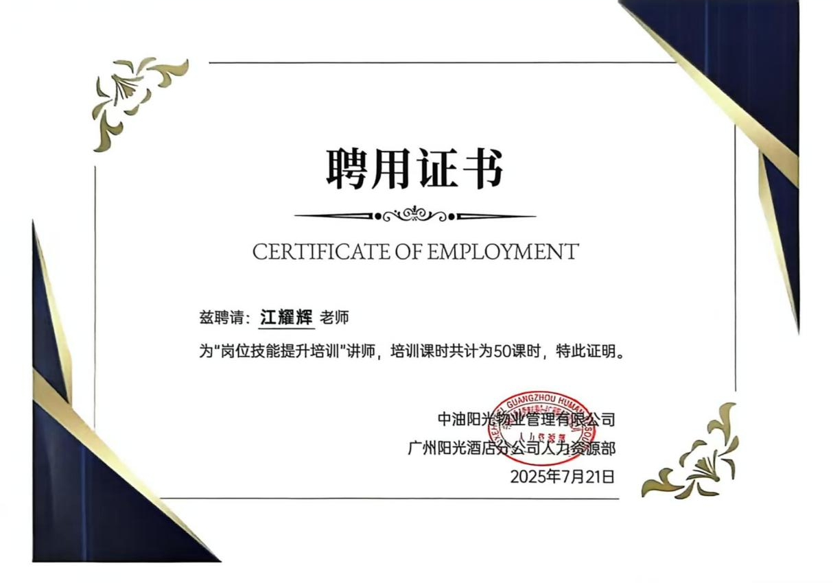 近日,在线买世界杯平台旅游管理专业与酒店管理与数字化运营专业的教师团队,作为广州阳光酒店的培训教师,积极参与了 “羊城工匠杯” 2025 年广州市住宿和餐饮服务技能竞赛暨第六届 “青年粤菜师傅” 创新创业竞赛中的餐厅服务员(中式、西式摆台)以及客房服务员竞赛项目的指导工作。