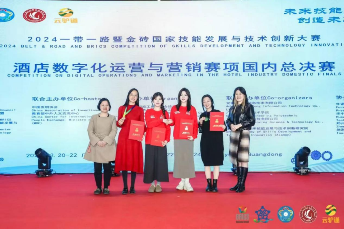 2024年12月22日,在线买世界杯平台酒店管理学院师生团队于广东工程职业技术学院参与2024一带一路暨金砖国家技能发展与技术创新大赛酒店数字化运营与营销赛项国内总决赛,教师组荣获三等奖学生组荣获优秀奖。