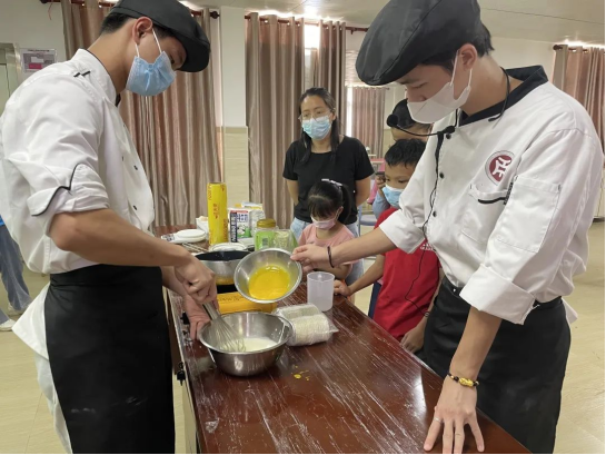为了促进亲子间的沟通交流,培养亲子之间的感情,提升亲子家庭间的亲密感,7月13日,在薪火“乡”传志愿队面点专业康梓云、吴悦胜同学的指导下开展亲子面点教学活动。