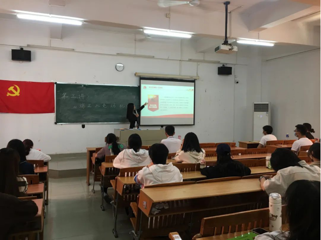 2022年10月20日中午,酒店管理学院党支部在创教301开展了初级党课第三讲。第三讲的主讲老师为机关第三党支部书记陈金苗老师,世界杯官网党支部书记谢锦权、辅导员陈海宁以及来自酒店管理学院、国际教育学院、机关党支部、马通党支部的师生学员参加了培训。