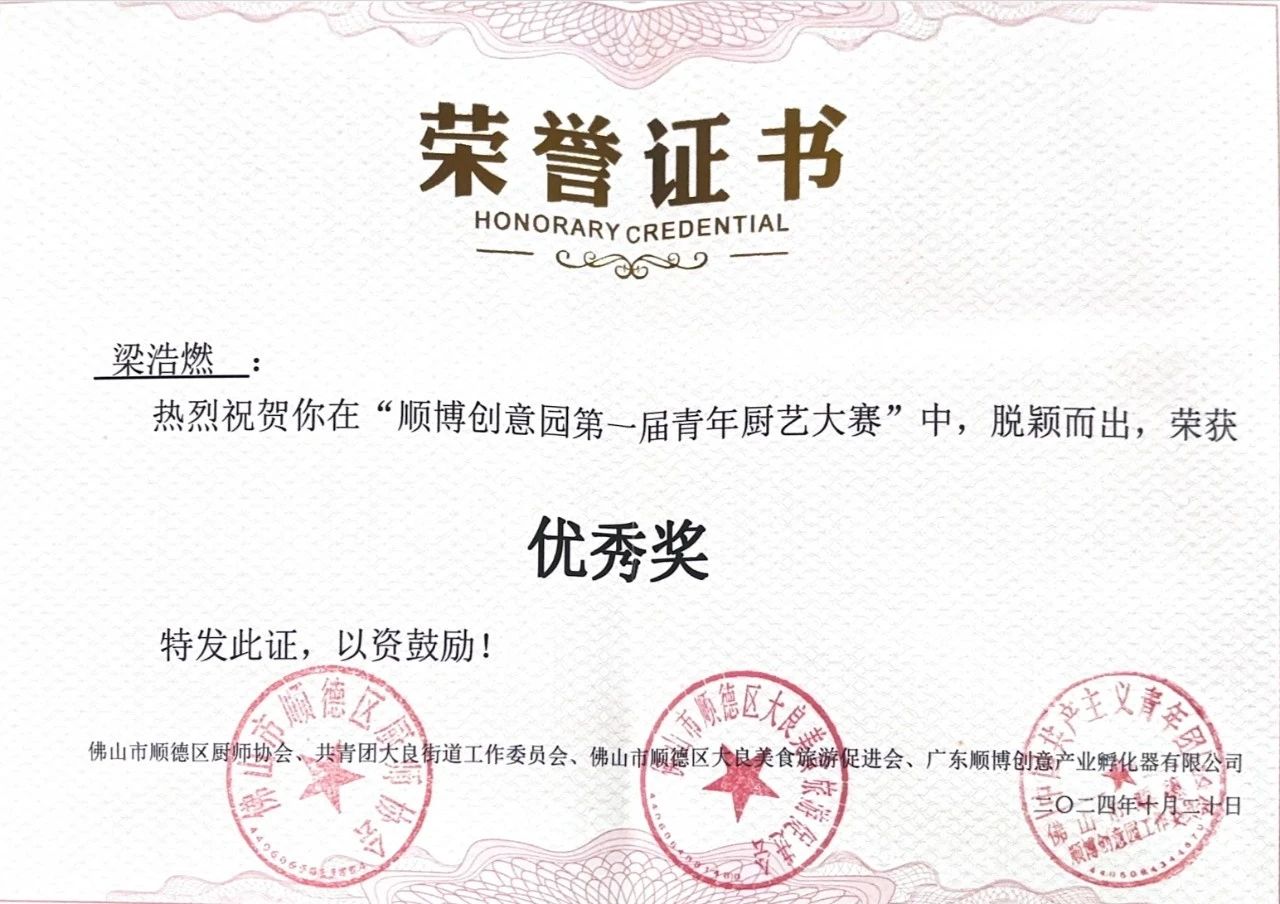 这些成绩的取得,不仅展示了梁浩燃同学的专业精神和创新能力,也体现了学校和学院领导的大力支持,更是体现了学校老师们在粤菜教育和专业人才培养方面的卓越成就。让更多的人领略到中华饮食文化的丰富多彩与博大精深。