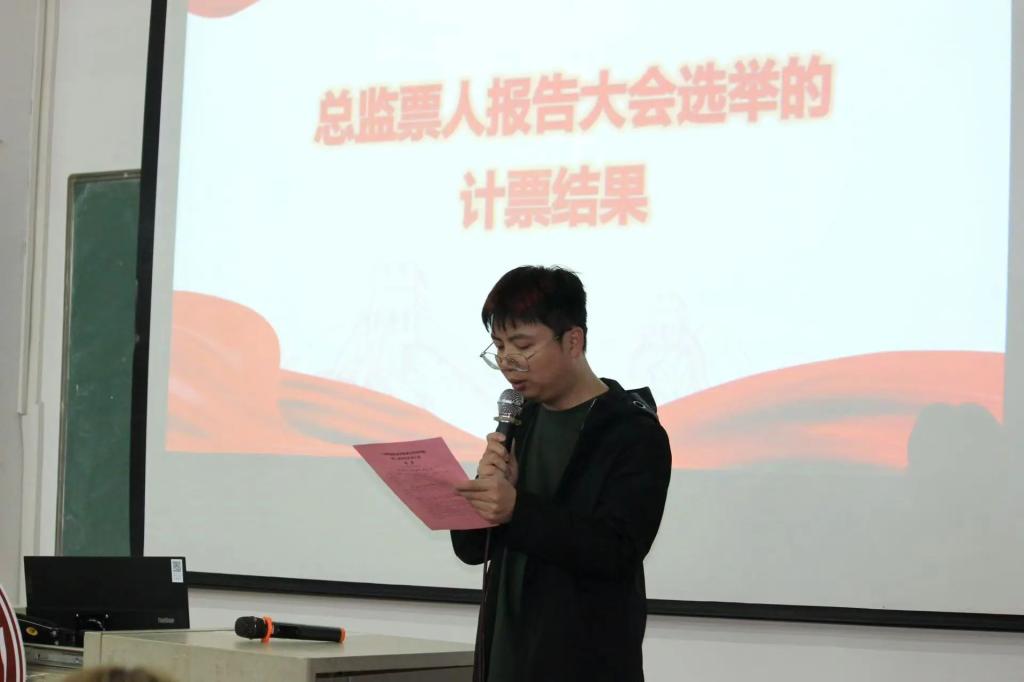 总监票人公布选举结果,宣布新一届学生会委员以及区倩钰、罗丽儒、陈煜垲等人为新一届主席团成员。