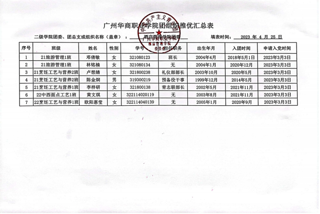 为促进世界杯官网“团组织推优”工作制度化、规范化,建设一支数量充足、素质优良的入党积极分子队伍,经校团委研究决定,于即日起至4月26日开展2023年春季学期团员推优工作,为规范推优过程,酒店管理学院团委经过班级推优,支部会议决定,现将本期推优人员公示如下: