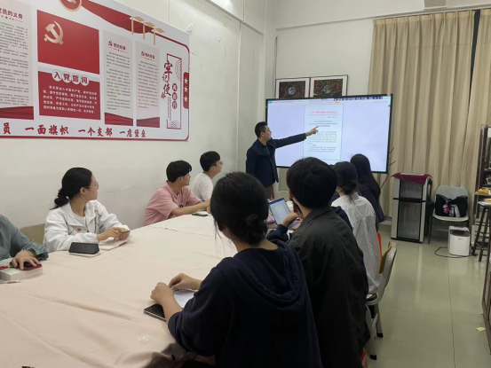 首先,大会进行了"第一议题"的学习。支部书记谢锦权带领全体师生党员深入学习党的二十大精神和习近平总书记系列讲话精神。重点以“二十大报告专章部署的这三项工作,习近平总书记持续推动落实”为主题,师生党员深入学习了二十大报告关于科技、人才、教育的论述。会上,谢书记带领全体师生党员共同学习了 《习近平谈治国理政(第四卷)》的部分内容,强调要不断学习先进思想,提高政治理论水平。