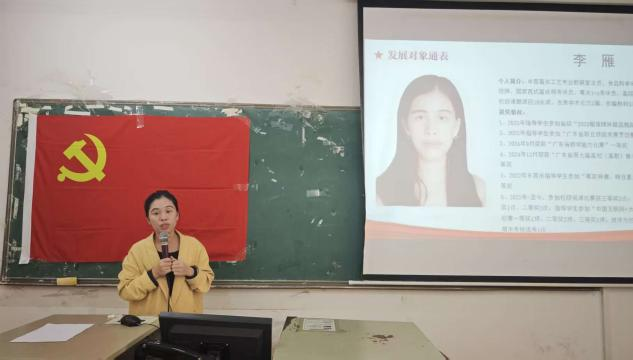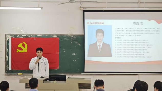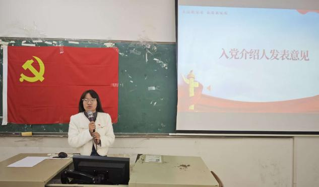随后,六名发展对象的入党介绍人分别对其现实表现作详细说明。各位介绍人结合对应发展对象在积极分子培养期的思想动态、学业进步、生活作风及实践表现,进行了客观全面的考察评价,并就其是否具备转为预备党员的条件逐一发表意见。
