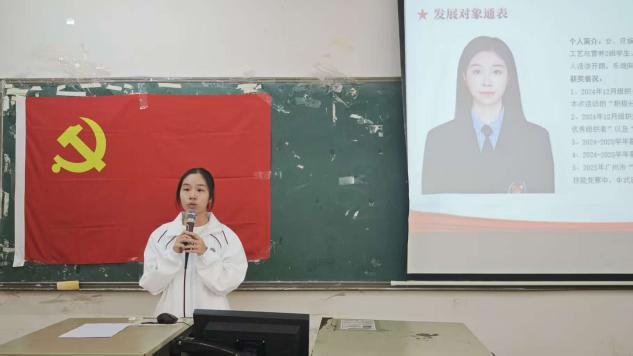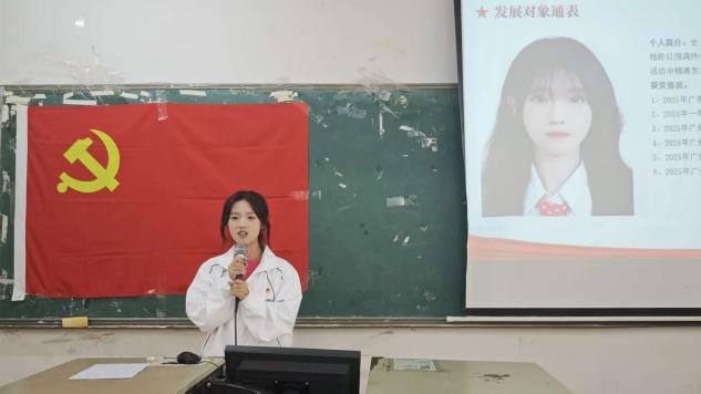 紧接着,大会开启发展对象通表议程。六名发展对象依次上台,从思想、学习、生活、工作实践和志愿服务多维度,汇报了近一年的成长与不足,同时以坚定的表态传递出入党的赤诚初心。