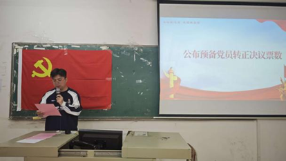 随后,陈海宁老师与黄向荣老师依次介绍了该同志预备期的现实表现,一致认为其思想上始终与党组织保持高度一致,日常表现乐观上进、能吃苦耐劳,综合素养已符合正式党员标准,均建议党组织批准其按期转正。