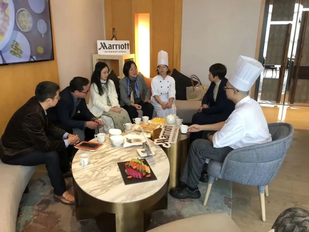 林红梅院长一行参观了广州东圃合景福朋喜来登酒店,详细了解了该企业生产经营、人才需求等情况,并与酒店总经理韩科以及人力资源部、餐饮部、西厨、中厨等部门负责人进行了面对面交流。韩总对世界杯官网实习生们的实习表现非常认可,对实习生的工作能力、职业素养评价较高,并结合企业的岗位需求对学院的人才培养提出了宝贵的建议。