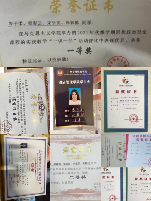 在学习上,岑子柔同学做到勤奋学习、刻苦用功,态度认真、努力钻研。对待学业,岑子柔同学秉持着“业精于勤荒于嬉”的理念,获得了优异的成绩,在2021-2022学年综合测评中排名专业第一,并且获得了一等奖学金。与此同时,岑子柔同学积极发扬天道酬勤的学习精神,在其他方面也屡创佳绩。在校期间通过自身努力,考取了计算机一级证书、英语b级证书、信息化办公等证书。在课余时间里,还参与了学校组织的挑战杯比赛、活动,取得了不错的成绩。