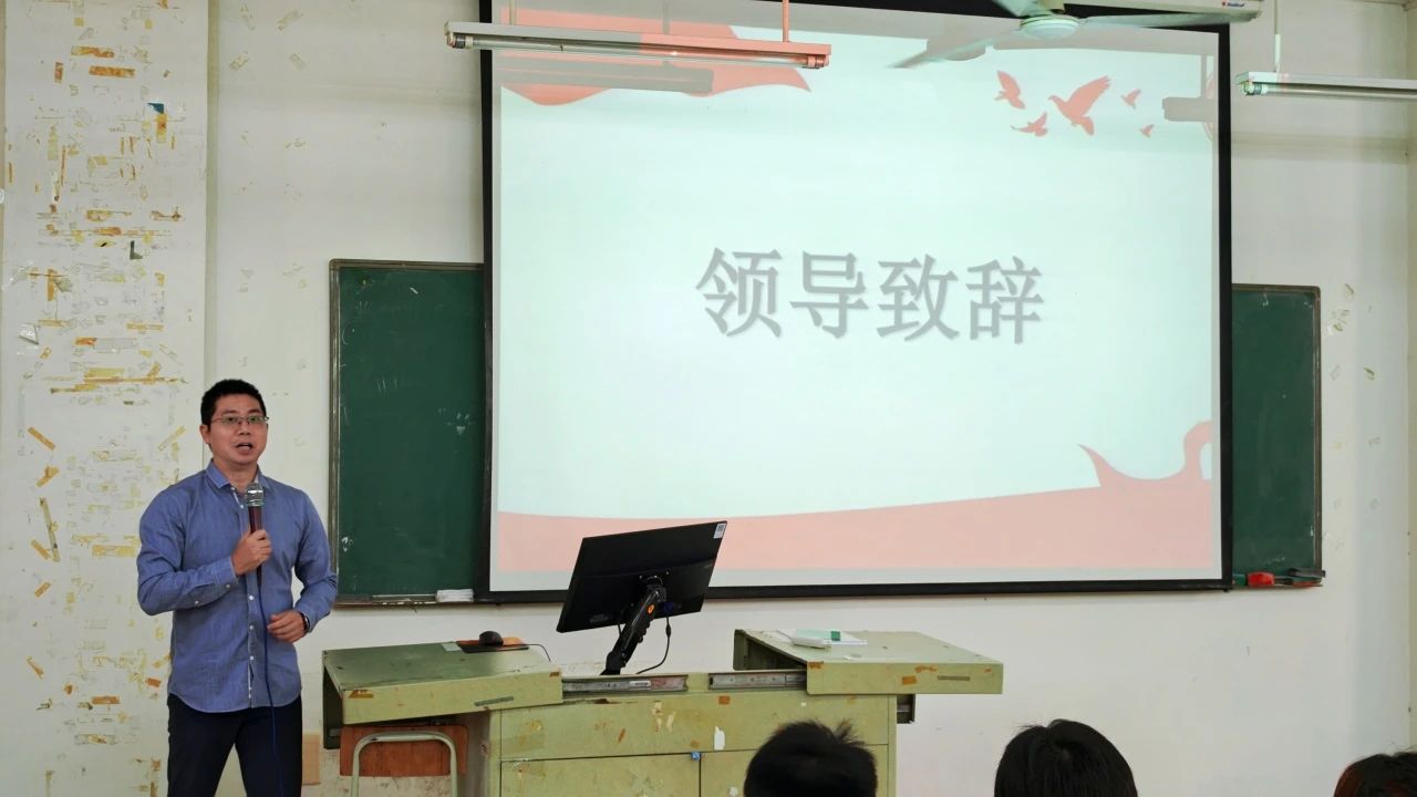宣讲会议开始,党支部副书记谢锦权发表了致辞。他指出,在同学们身边,总有一部分同学凭借着清晰的目标、坚定的决心以及不懈的努力,在专升本的备考道路上或者入伍的热血征途中脱颖而出,他们已然成为了全体同学学习的楷模。举办此次宣讲会,目的就是希望通过这些优秀学子分享自己专升本的学习历程、备考经验,以及入伍的初心、在部队中的成长收获等内容,为大家提供宝贵的借鉴和启示,激发同学们对于提升学历或者投身军旅的热情,让每一位同学都能在自己心仪的逐梦道路上找准方向,绽放光彩。